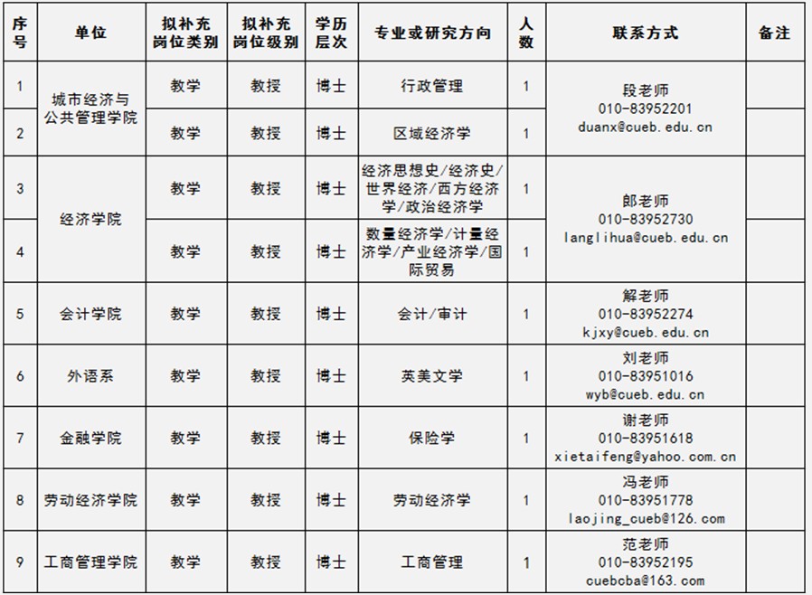 地 址:北京市丰台区花乡张家路口121号首都经济贸易大学人事处